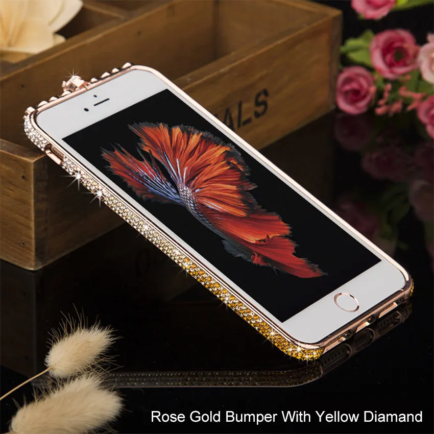 Color:Gold /Rose Gold /Silver Bumper With Pink /Yellow /White Diamand