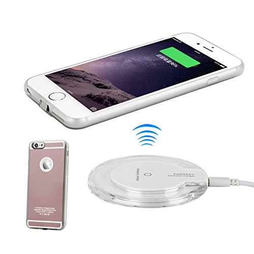 -. Feature : [ONLY FOR IPHONE 6 PLUS/6S PLUS - 5.5 VERSION]: This is a pair of wireless charging kit including transmitter and receiver. Just attach the Qi receiver case into your iPhone 6 PLUS/6S PLUS and place it on the Qi wireless charging pad, Charging Starts! / [WIRELESS CHARGING RECEPTOR]: Made of durable TPU material, precise cutouts gives full access to all ports; Flexible lightning connector makes it easy to sync and charge the old-fashioned way (no need to take off the case!). / [FASHION DESIGN & SAFE CHARGE]: The mat is made of clear Acrylic and plastic. It will turns on blue BLINKING breathing LED light when charging. | Non-slip silicone rubber feet and built-in protection system, safety and never overcharge your phone. / [REMINDER]: We strongly recommend using a 2A wall adapter and good quality USB cable for the best results. It's normal for the pad and phone get warm slightly during inductive charging, and they may get even warmer if you use your phone during charging, for example using GPS or playing games, music etc. / [QI CASE IS A MUST TO CHARGE WIRELESSLY]: iPhones itself is not Qi-enabled, please must use the Qi receiver case we provided to achive wireless charging. Don't use other cases without Qi.