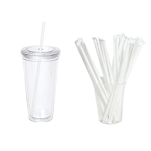 -. Title : 500 Drinking Straws Paper Wrapped Slim Plastic 8" Translucent Clear Drink Cup !