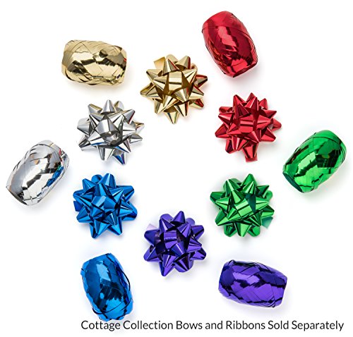 Studio : The Cottage Collection Publisher : The Cottage Collection Binding : Kitchen Product Description GIVE YOURSELF THE GIFT OF ORGANIZATION AND A RAINBOW OF COLORThe Cottage Collection Gift Wrap Bows are neat, tidy, and at your fingertips with 6 colors in 1 pre-filled storage box. Never dig in a messy storage bin again! Buy Now for this assortment of gift wrap bows in a no-crush storage box!WRAP, DECORATE, AND CELEBRATEWith 6 Colors of glimmering metallic bows, you will be ready to wrap and decorate for holidays and special events that come your way: kids adults birthdays, graduations, bridal showers, Christmas, Hanukkah, parties, and more! CHOOSE YOUR LOOK FROM CLASSIC TO CLASSYYour order includes 6 colors of premium bows in: Gold, Silver, Red, Blue, Green, and PurpleCombine with our other Cottage Collection offers to expand your color palette for a variety of ribbons and bows at your fingertips! THINK OUTSIDE THE GIFT BOXThe Cottage Collection Metallic Gift Wrap Bows are perfect for crafts and come in their own organizer for easy storage. Choose the 2.5" Medium or 3.5" Large set - or both! Always have the perfect gift wrap bow on hand. Spruce up a gift card or wine bottle, use with The Cottage Collection Curling Ribbon to create a beautiful presentation gift box or an eye-catching tablescape or inside a teacup for your next dinner party. The included organizer preserves your Cottage Collection Gift Wrap Bows, keeping them easy to access and store without a fuss or damage. A Perfect Storage Solution!- Protects Gift Wrapping Bows from damage - No more crushed or wasted bows - Compact storage box delivers a wealth of bows in optimal space - Choose from a selection of Cottage Collection Ribbon sets, Gift Wrap Bows... - Perfect for Birthdays, Baby Showers, Bridal Showers, Anniversaries, Graduations, Dinner Parties, Balloons, and more! Give yourself a new reason to party. Add The Cottage Collection Curling Ribbon to your cart today! 0