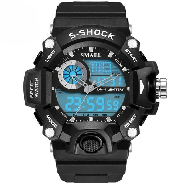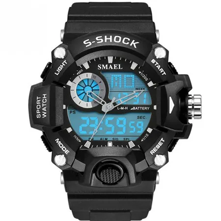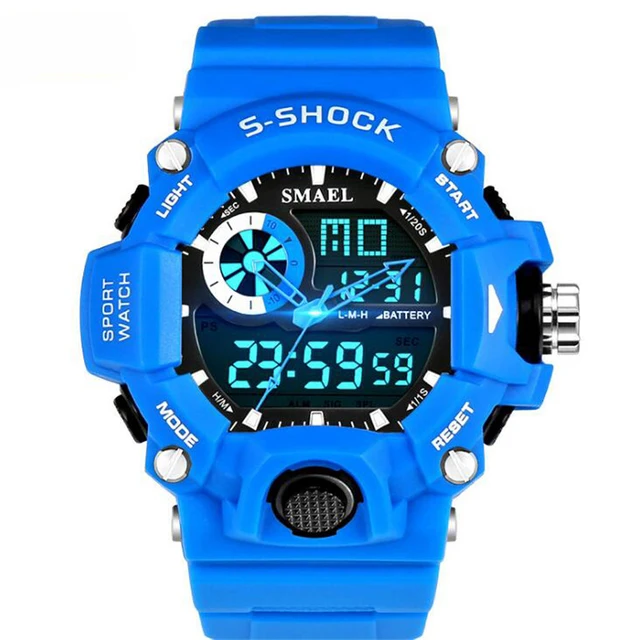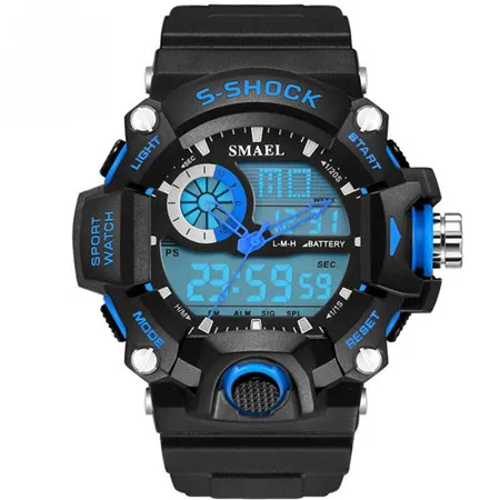 | [해외] 브랜드 스포츠 스테인레스 스틸 시계 블루 방수 LED 디지털 석영 듀얼 디스플레이 시계 남성 손목 시계 Relogio |