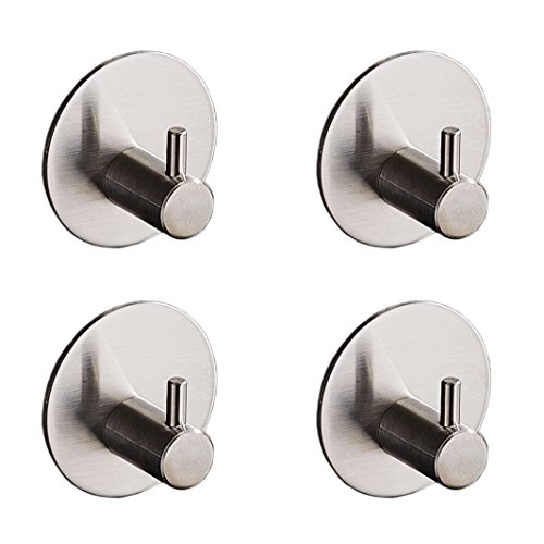 Mellewell 4 PCS Adhesive Hooks Towel Hangers, Stainless Steel Brushed Nickel, 02009H4