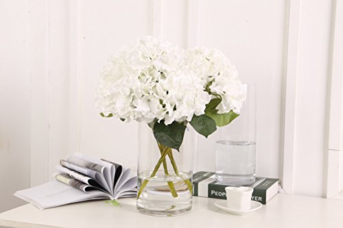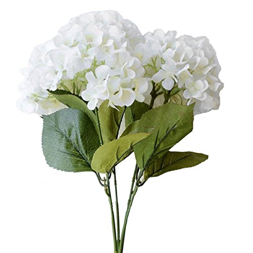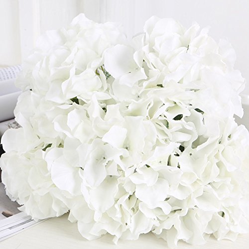 Sunrisee Artificial Flowers 5 Big Heads Fake Silk Hydrangea Flowers for Home Hotel Wedding Party Garden Floral Decor, White