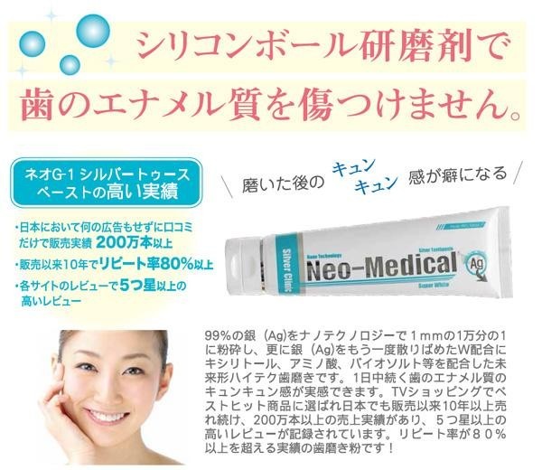 | 累計200万本以上!リピート率80%以上!大ヒット商品のネオG-1シルバートゥースペーストに、歯ブラシ1本と、20gの携帯用サイズがついてお得になりました。 |