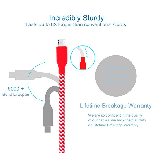 Premium Materials: Wrapped in high quality Ruggedized braided nylon fabric jacket, flexible to be coiled for portable carrying and protecting against day-to-day wear and tear. Tangle-free Braided USB Cable with the anti-corrosion PVC joint has a 5000+ bend lifespan bend lifespan