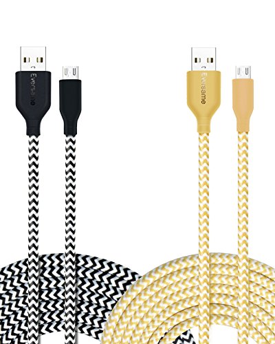 Eversame [2-Pack] 6Ft 1.8M Premium Nylon Braided High Speed USB 2.0 A Male to Micro B Sync Charger Cable For Samsung Galaxy S6/S7 Edge/Note5, LG Volt/G4 (black white)
