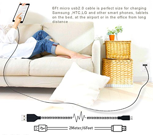 Extra Long: With an extra-long 6ft cord, connect your Android devices farther than ever. 6Ft micro usb2.0 cable is perfect size for charging Samsung ,HTC,LG and other smart phones, tablets on the bed, at the airport or in the office from long distance, easily carry this light weight cable wherever you go