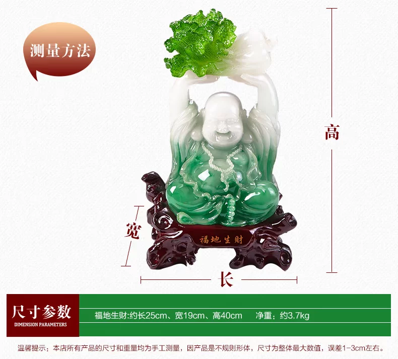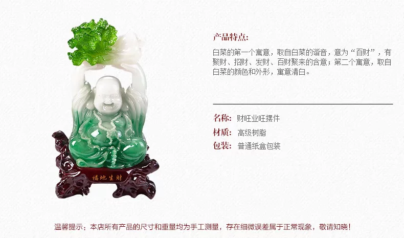 白菜谐音百财,此佛像放在客厅、书房、办公室、店铺能给您带来好运,受佛像坦诚的笑容影响忘却烦恼,富贵自来,财源滚滚来!采用进口高级环保树脂制作,产品安全绿色无污染无辐射
