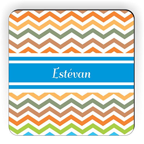 Rikki Knight "Estevan" Blue Chevron Name Design Square Fridge Magnet