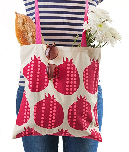 Cotton-Canvas Hand Shoulder Tote Bag, Jewish (Pomegranates) Barbara Shaw Gifts, Made in Jerusalem