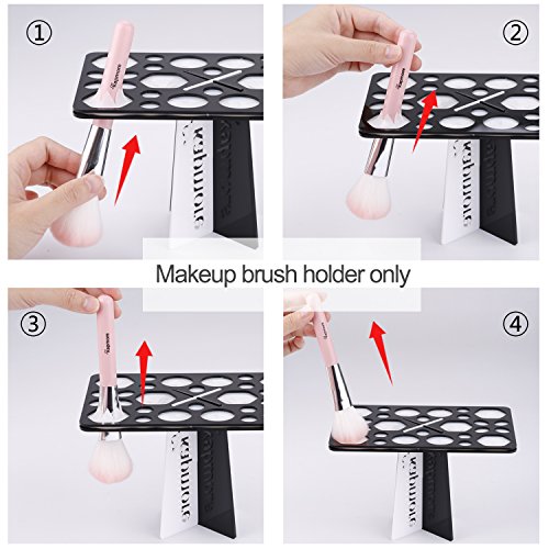 - With 28 mix holes, the brush drying rack is convinient for many brushes: cheek brush, nasal brush, eye shadow brush, lip brush, nail brush. The brush holder can avoid the brush bristles being deformed or distorted effectively.