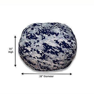 Features: Bring a fun addition to your little one's playroom or bedroom with the Medium Bean Bag Chair in Digital Camouflage Unique pixelated design makes this bean bag a modern and fun addition to your child's room Lightweight so your child can easily move the chair Double locking zipper prevents mishaps Lavender color 100% polyester 250 lb. weight capacity Measures 29" L x 29" W ' 10.15" H Made in USA of imported materials