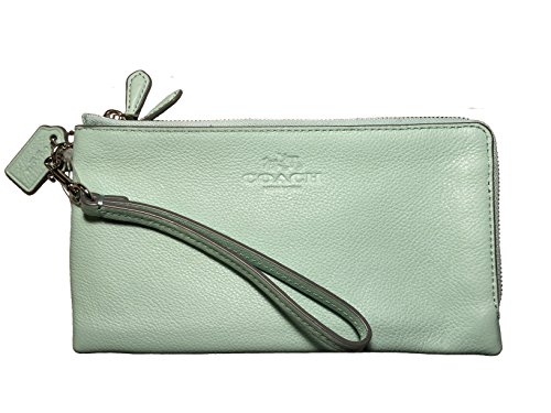 -. Title : Coach Women Pebbled Leather Double Zip Wallet Wristlet Silver/Seaglass F53561 SVELQ