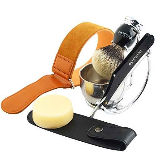 - ACCESSORIES: Stainless steel shaving soap bowl 2 layers Dia 3.2",shaving brush and razor holder,3.5oz shaving soap,manual folding shaving razor,leather travel razor case,shaving sharpener strap.