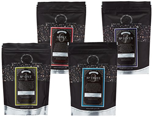 -. Feature : Feinster Gourmet-Kaffee von Hallingers, täglich frisch geröstet - ein Set aus vier unserer Espresso-Sorten - welcher wird Ihr Favorit? / Bedonders Magen-schondend, voll-aromatisch und bekömmlich, da Langzeit-geröstet bei niedrigen Temperaturen / Nur elesenste Bohnen werden verwendet, frei von Konservierungsstoffen, möglichst Natur-belassen / Die Verpackungs-Designs von Hallingers sind international ausgezeichnet (u.a. Red Dot Design Award 2013, German Design Award Special Mention 2014) / Ein Hochgenuss für Gourmets zum Verschenken oder zum selbst Genießen