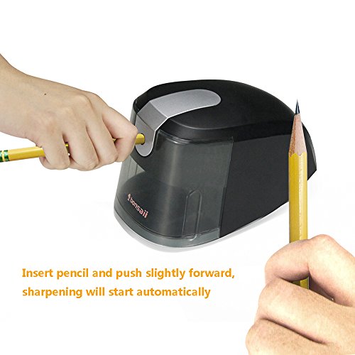 AUTOMATICALLY SENSING FOR EASY USE TO SAVE ENERGY– Insert pencil and press downward with a little bit force then the sharpener will start automatically and completely comes a nice tip in 4 seconds, which will save your time and energy.