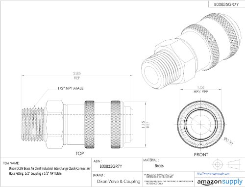Dixon DCB9 Brass Air Chief Industrial Interchange Quick-Connect Air Hose Fitting, 1/2" Coupling x 1/2" NPT Male