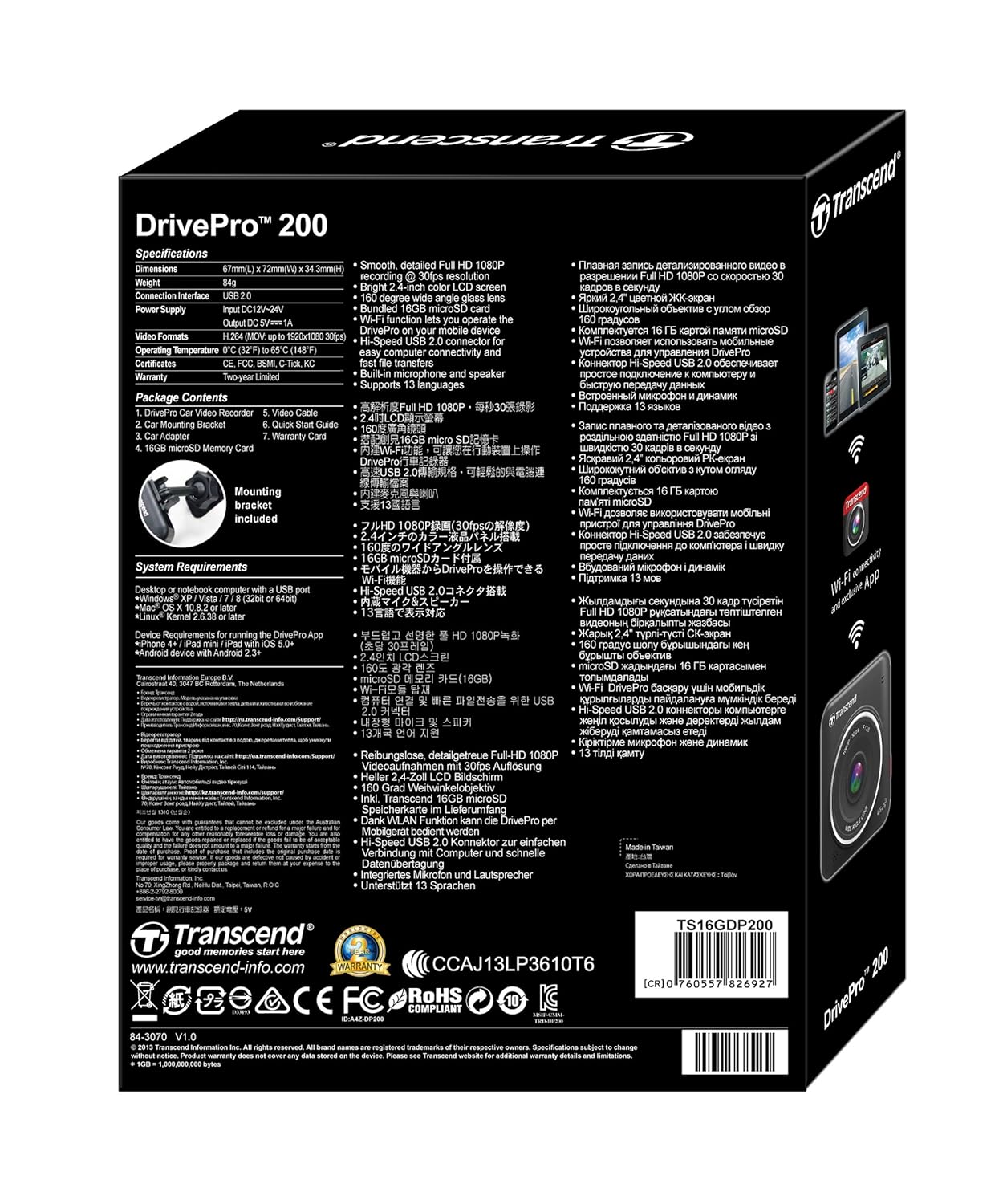 Smooth, detailed Full HD 1080p recording @ 30 fps 160 viewing angle gives an extra wide perspective of on-road events day or night with a large f/2.0 aperture to adjust to various conditions Bright 2.4-inch color LCD screen for live view and video playback Motion G-Sensor detects impacts and automatically protects current recording 7 Glass lenses for ultra sharp picture