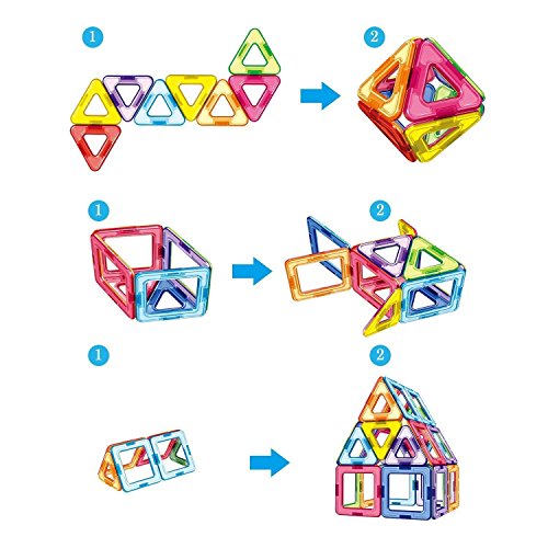 VARIOUS MODELS: Its powerful magnetic components are very easy to assemble. It can combine various models,such as goat, house, pentagram, heart shape, windmill, airplane, motor car, microphone, ball, etc, which makes an unlimited fun.