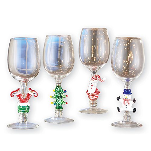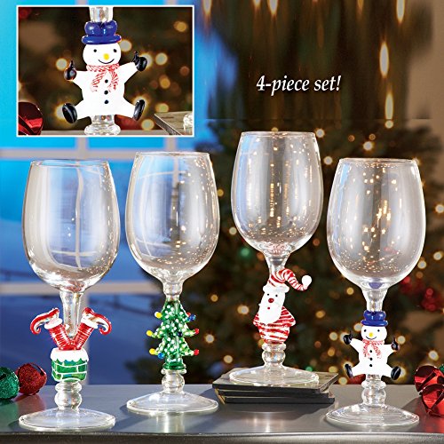 Studio : Collections Etc Publisher : Collections Etc Product Description Christmas Themed Decorated Festive Wine Glasses - Set Of 4 Description These fun and festive hand-blown holiday glasses are a great addition to any holiday get-together. The set includes 4 wine glasses with a different holiday character on each stem. A snowman, Santa, Christmas tree and Santa stuck in a chimney are crafted in colorful glass for a cute display. Glass. 3 1/2"Dia. x 9"H. No Risk Purchase, Hassle-Free Returns - 100% Satisfaction Guaranteed With customer satisfaction as our number one priority, we proudly offer a Satisfaction Guarantee for all of our merchandise and services. From our appealing merchandise and incredible values, to our friendly customer service, we strive to provide a positive shopping experience by meeting or exceeding your expectations.If you are not completely satisfied within 60 days of your purchase (see return policy for details).