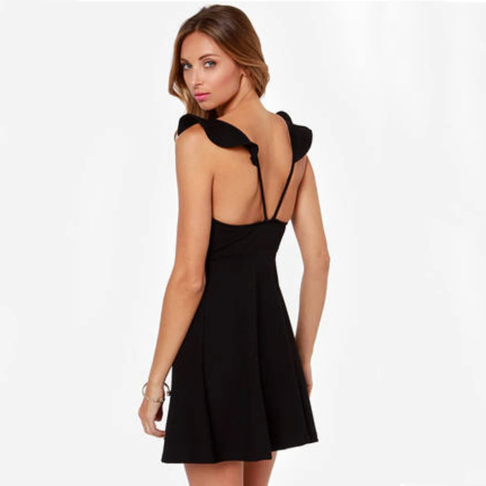 HDY Haoduoyi Solid Color Women Mini Dress Sleeveless V Neck High Waist Party Dress Women Ruffles Backless Bodycon Dress Vestidos | |||||||||||||||||||||||||||||||||||||||