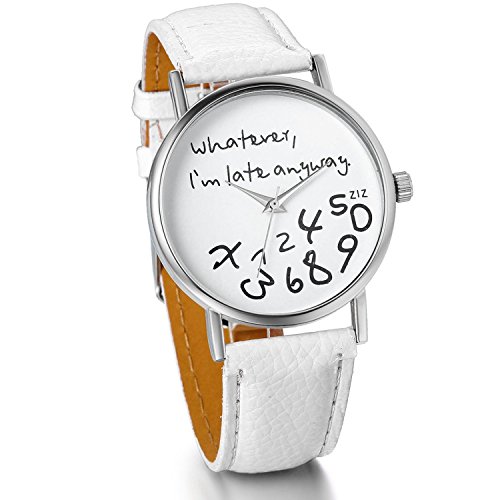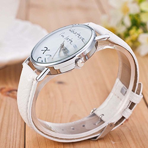 -. Title : " Whatever, I'm late anyway" Letter Unisex Women Girl Leather Strap Watches Quartz Wrist Watch