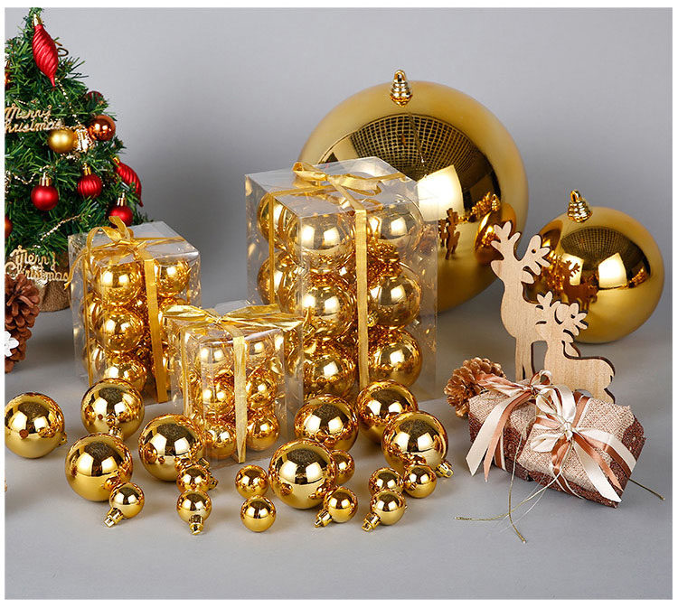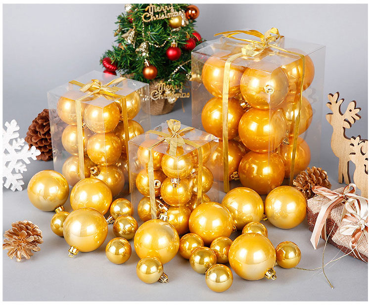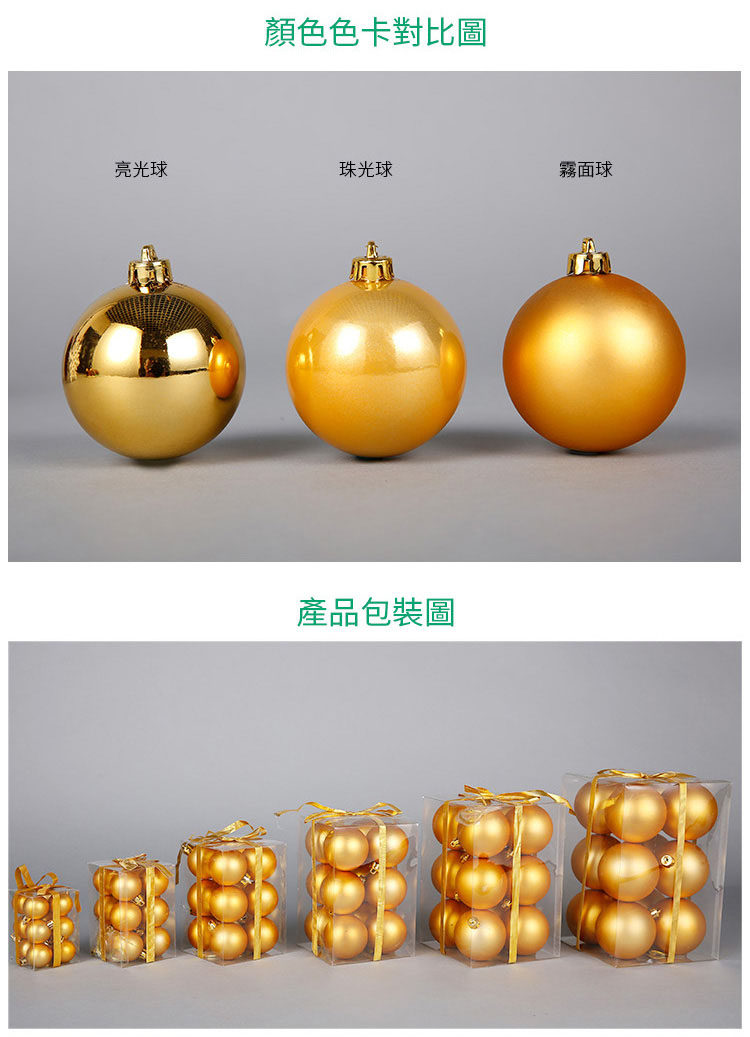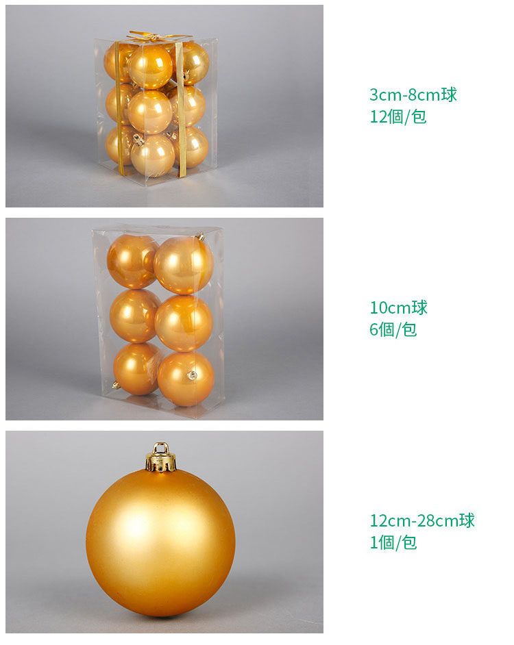 台湾晶华造花3-28cm金色亮亚光圣诞球圣诞节装饰用品圣诞树挂件