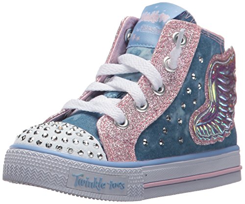 Skechers Girls' Shuffles-Fooling Flutters Sneaker, Light Blue/Pink, 10 M US Toddler