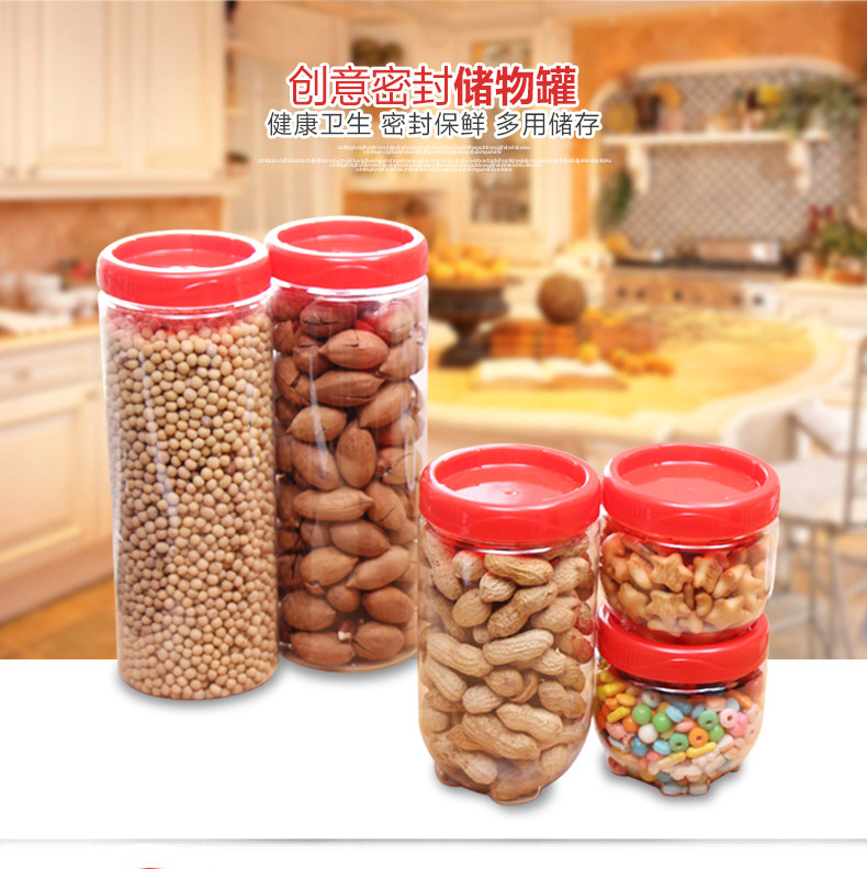 塑料带盖储物罐保鲜盒杂粮冰箱收纳防潮密封罐干果瓶子五谷糖果盒