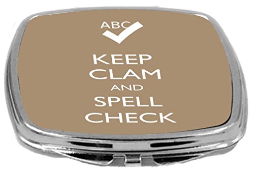 Rikki Knight Compact Mirror, Keep Clam and Spell Check Brown