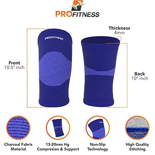 -. Feature : PROVIDES KNEE SUPPORT - Our ProFitness knee compression sleeves offer solid protection when you are out putting in a lot of miles on the trails or the treadmill. / SUPPORTS POST SURGERY RECOVERY - Delivering all-around knee support and compression after surgery. Our knee sleeve will make sure the path back to your lifestyle is a safe one. Good for pain management. / DELIVERS ALL-AROUND COMFORT - ProFitness knee sleeves for arthritis pain relief wrap around your knees and give you comfort. Tight, protective covering with a balance of support and compression. Prevents injury. / PREVENTS INJURY - Bamboo Fabric Knee sleeves helps athletes avoid joint pain. Knee compression sleeve also can provide arthritis pain relief, too. / THREE COLOR OPTIONS - Select your ProFitness knee sleeves in blue, gray, black style.