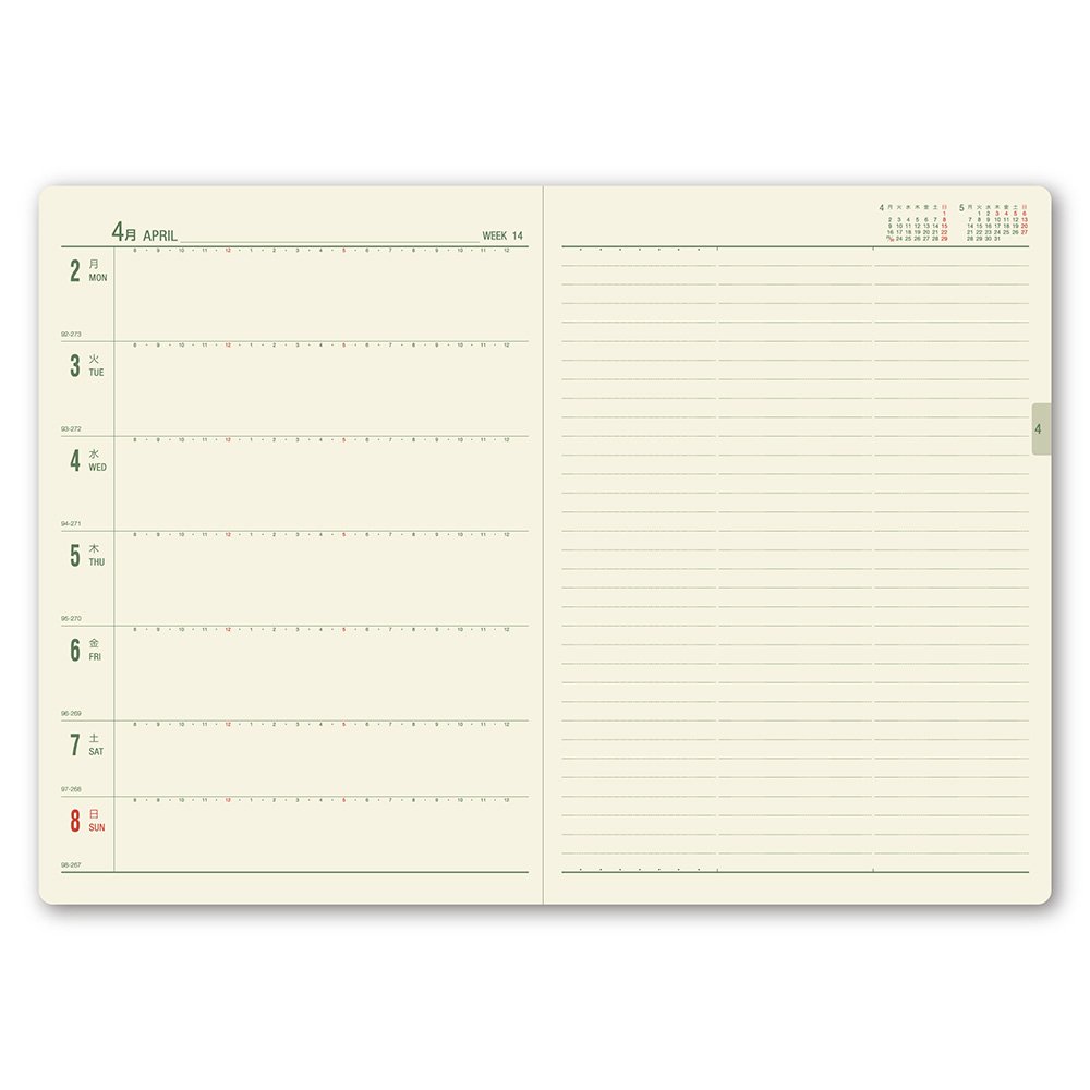 The part of the date is divided into 4, it can be written as AM, A PM, Evening, NIGHT, and the Week part is always written in 1 or 2 pages. With this usage, people with horizontal lines are easier to fill in than the timetable (no horizontal line) on the left page of the week, but as with the right page, it is easier to fill in, but I have gotten used to it for years. Also, customs of notebooks are also accompanied by December of the previous year and January to March of next year. Personally I purchase the following year's fall every autumn so that part is unnecessary. Also, although there are many 55 free pages, it tends to dissipate on dates and so it is hard to use.