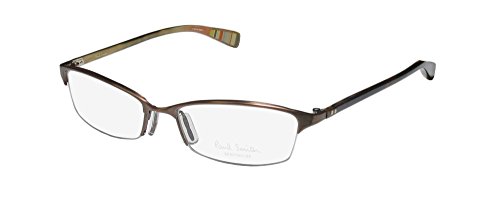 Brand: Paul Smith Style: 186 Gender: womens Frame Type: half-rim Frame Material: metal plastic Case: eleganzo The frame is fully rx-able and can be fitted with prescription and/or tinted lenses at most optical stores. Please note that factory demo lenses have a logo stamped on them in ink. This frame provides comfortable fit and flatters a variety of face shapes. These eyeglasses are made of metal and high quality, durable acetate plastic. Please keep in mind that original case is not included with this frame. However, we will include an Eleganzo hard case at no extra charge to keep your eyeglasses protected. The glasses are made in Japan. These eyeglasses retail for $340.00 at upscale stores that carry designer frames. Save your money and get them here! The pictures cannot fully reflect the beauty of this piece of designer eyewear. These eyeglasses look even more elegant in real life. 0 |