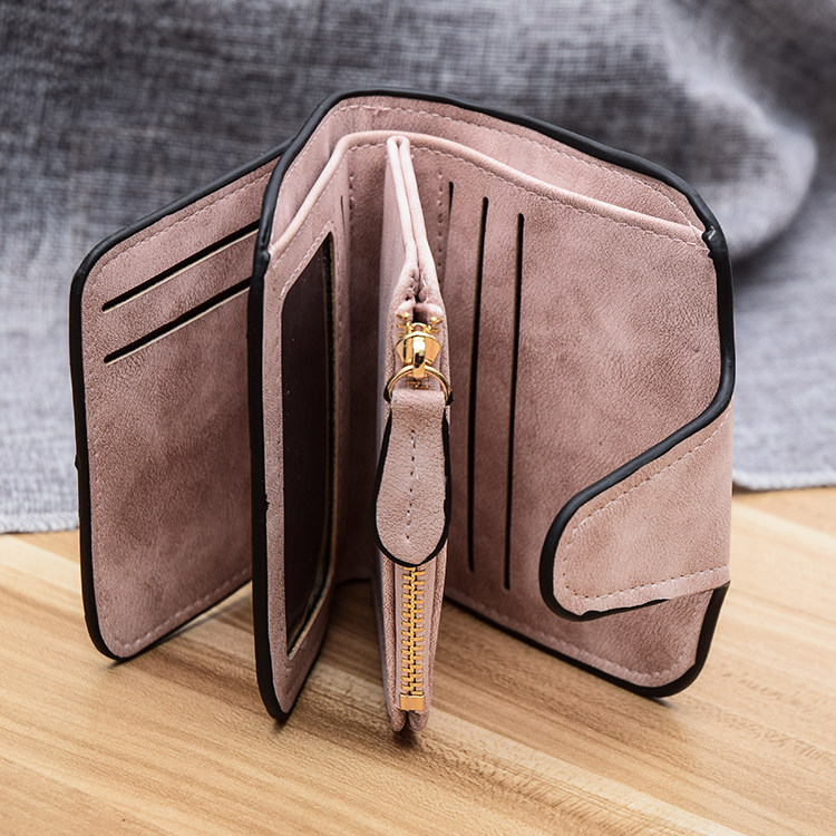 Textured Nubuck Women Short Wallet Bifold Purse Cardholder