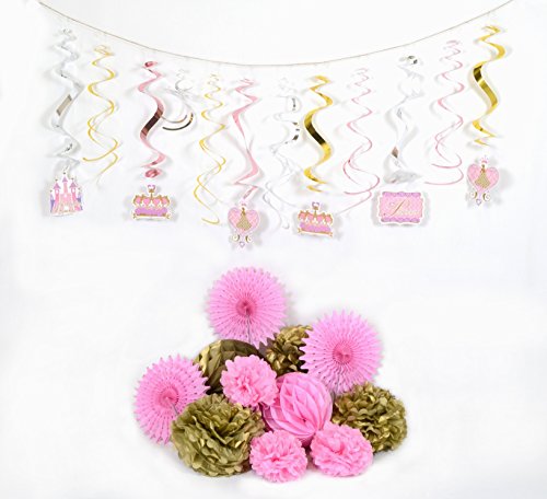 Baby Shower Boy or Girl pompom birthday Party swirl Garland Hanging Decoration (PRINCESS SET)