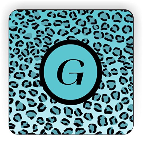 Rikki Knight Letter "G" Initial Sky Blue Leopard Print Monogrammed Design Square Fridge Magnet