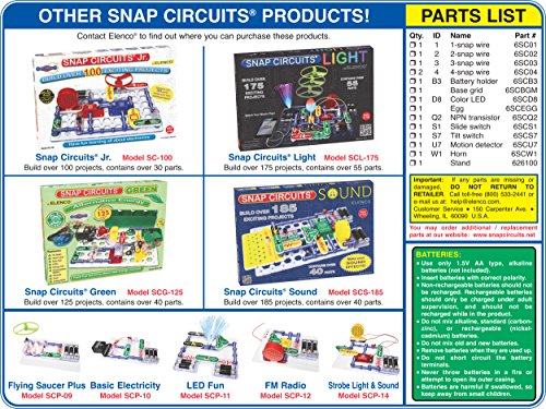 -. Binding : Toy -. Brand : Elenco -. Color : Multi -. EAN : 0756619010236 -. Feature : Snap Circuits(R) Motion Detector / When motion is detected, a laser sound is emitted and the color LED flashes / Snap Circuits(R) use brightly-colored electronic components that snap onto a clear plastic base to build different circuits / Kit includes an instruction sheet for the main project and up to 5 additional projects / Requires 3-AA batteries (not included) -. IsAdultProduct : 0 -. Label : Getting Fit -. Manufacturer : Getting Fit -. Model : 756619010236 -. MPN : 756619010236 -. PackageQuantity : 1 -. PartNumber : 756619010236 -. ProductGroup : Toy -. ProductTypeName : TOYS_AND_GAMES -. Publisher : Getting Fit -. Studio : Getting Fit -. Title : Elenco Electronics Snap Circuits R Motion Detector -. UPC : 756619010236 -. Warranty : No Warranty
