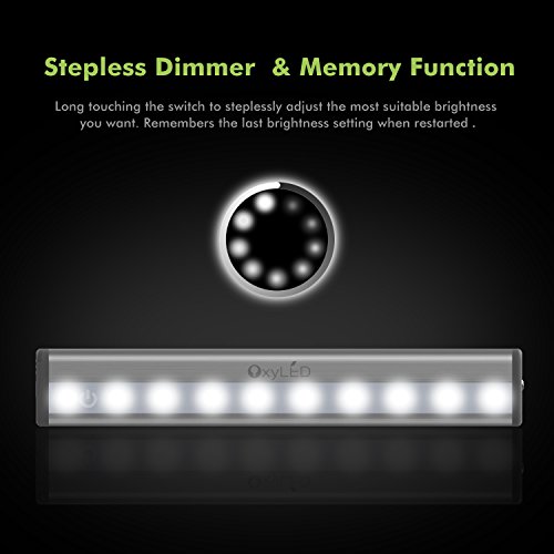 OxyLED Closet Lights,Touch Light,10 LED Dimmable Touch Tap Light,Stick-on Anywhere Push Light,Cordless Touch Sensor LED Night Light,Stair Lights,Safe Light with Magnetic Strip(2 Pack,Battery Operated)
