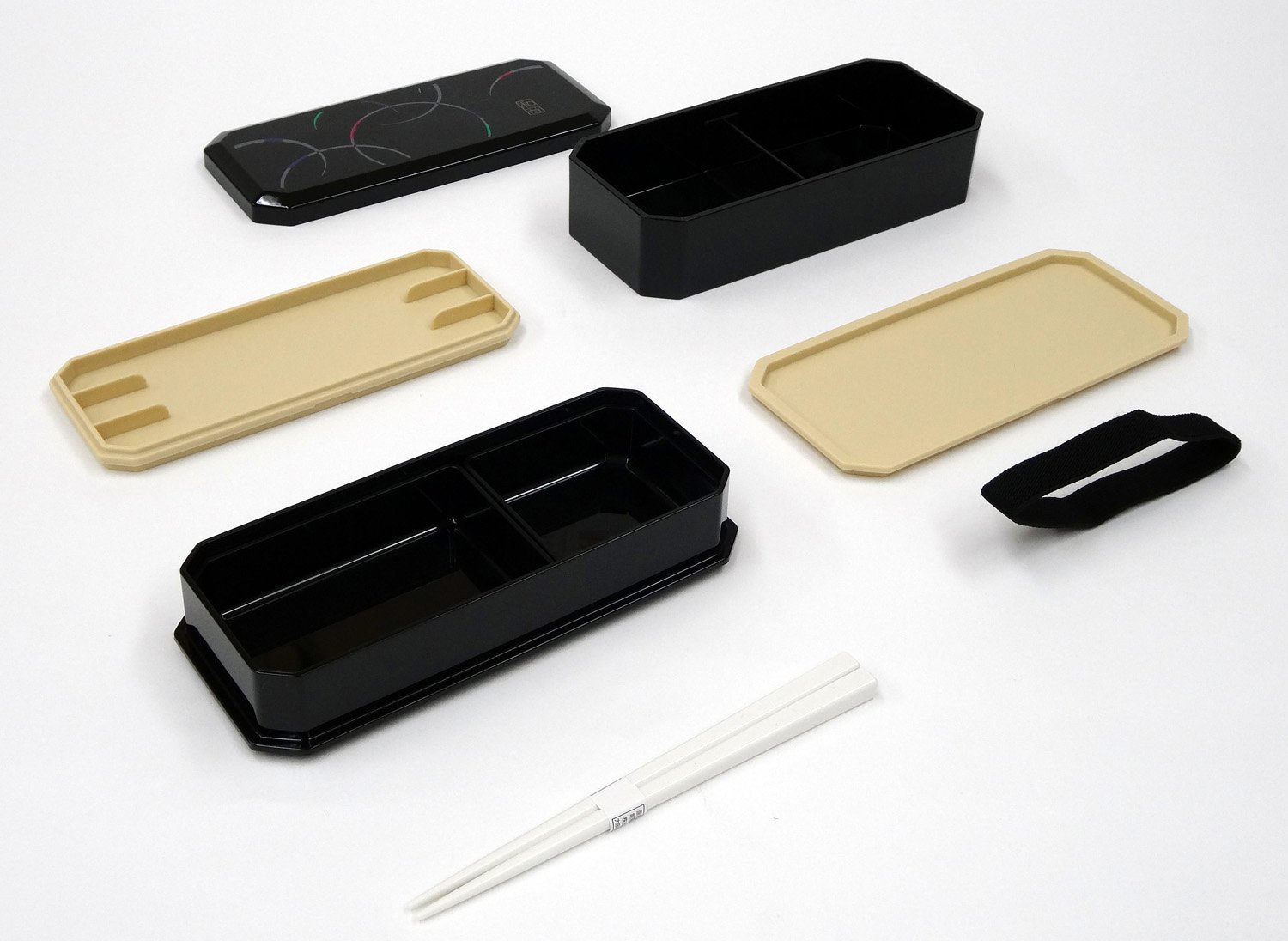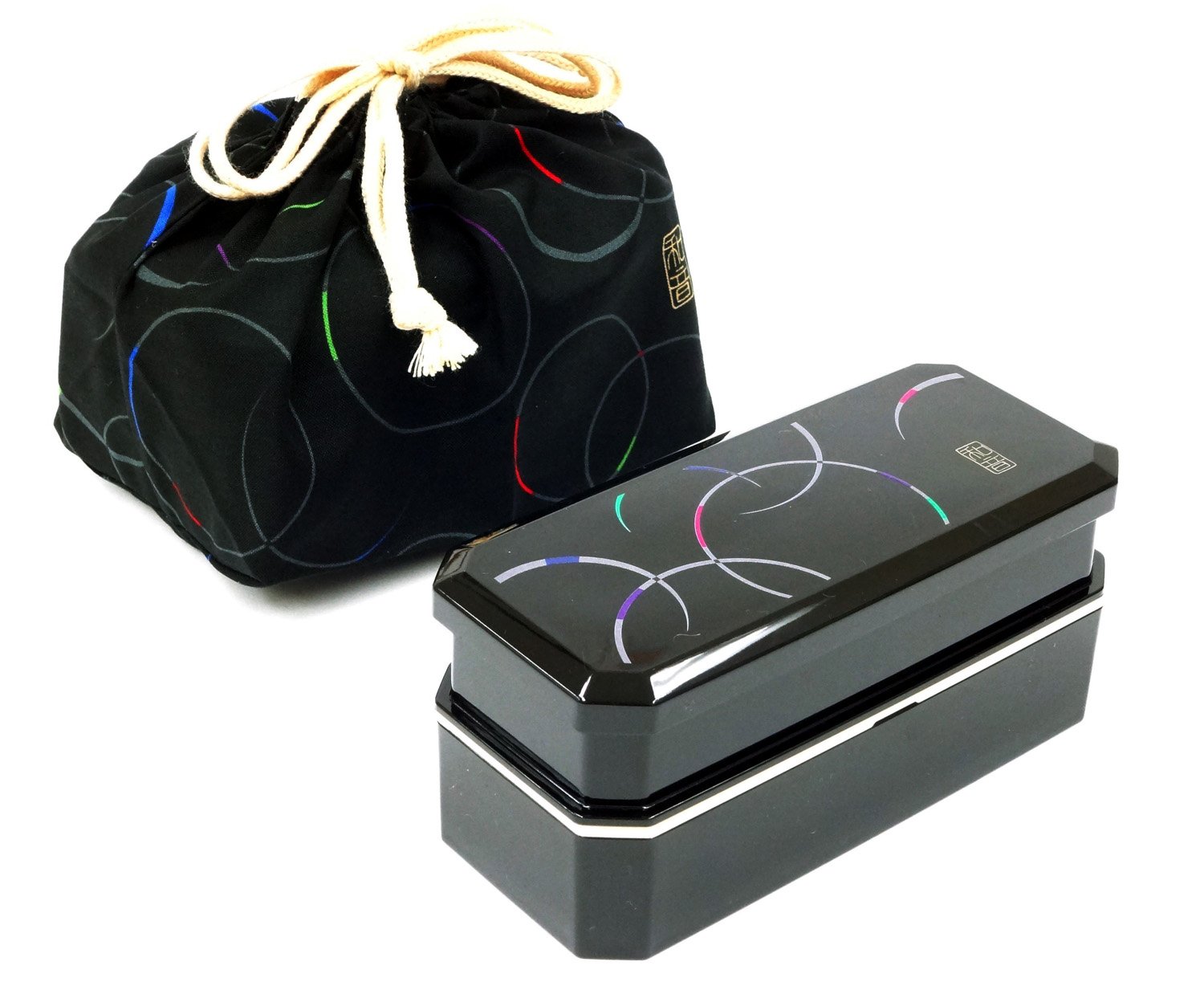 1 X Cool Japanese Bento Lunch Box with Belt Bag Chopsticks - Waon Black