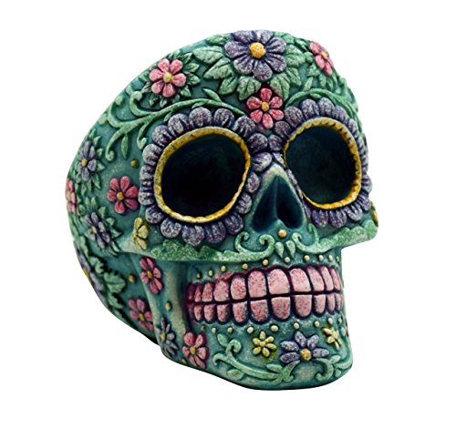 Aqua Pink Day of the Dead Sugar Skull Tall Ashtray Mexican Dia De Los Muertos