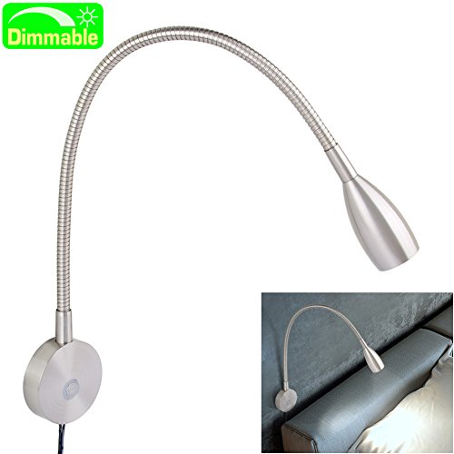 acegoo Bedside Reading Light, Minimalist LED Bed Reading Lamp Dimmable Touch Switch Headboard Wall Surface Mount Brushed Nickel
