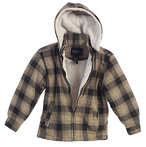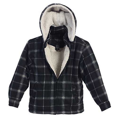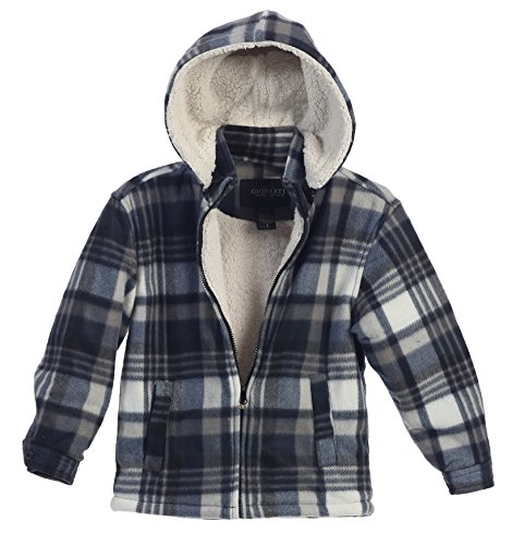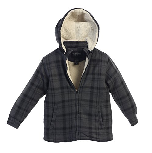 Big Boys Plaid Checked Flannel Zip Up Jacket Hoodie With Sherpa Lining, 100% Polyester