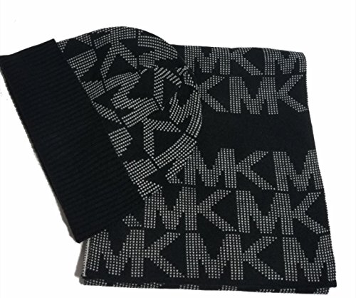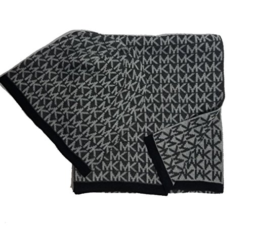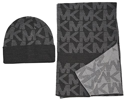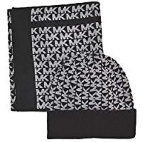 Michael Kors Signature MK Scarf Beanie Set, Black/Grey, Fall 2017