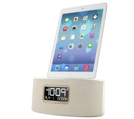 The iDL46 is a stereo dual alarm clock radio for iPad, iPhone and iPod that lets you charge your iPad, iPhone or iPod and lets you wake and sleep to either one, to a custom playlist, or to FM radio. Charge and play via flexible Lightning dock or USB port (with your own cable). The auto sync feature syncs the clock to your iPhone in moments. The iDL46 also includes 6 FM presets, EQ controls and 3D stereo sound and Reson8® sound technology for an exceptional audio experience.Feature
