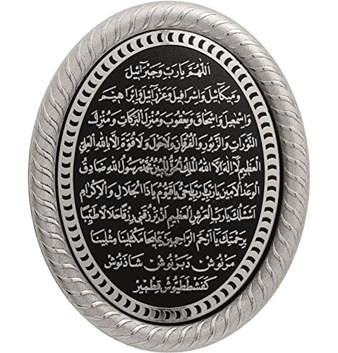 Islamic Gift Acrylic Decor Oval Plaque 7-3/8 x 9-1/4 inch Silver and Black Abundance Ayat (Bereket)