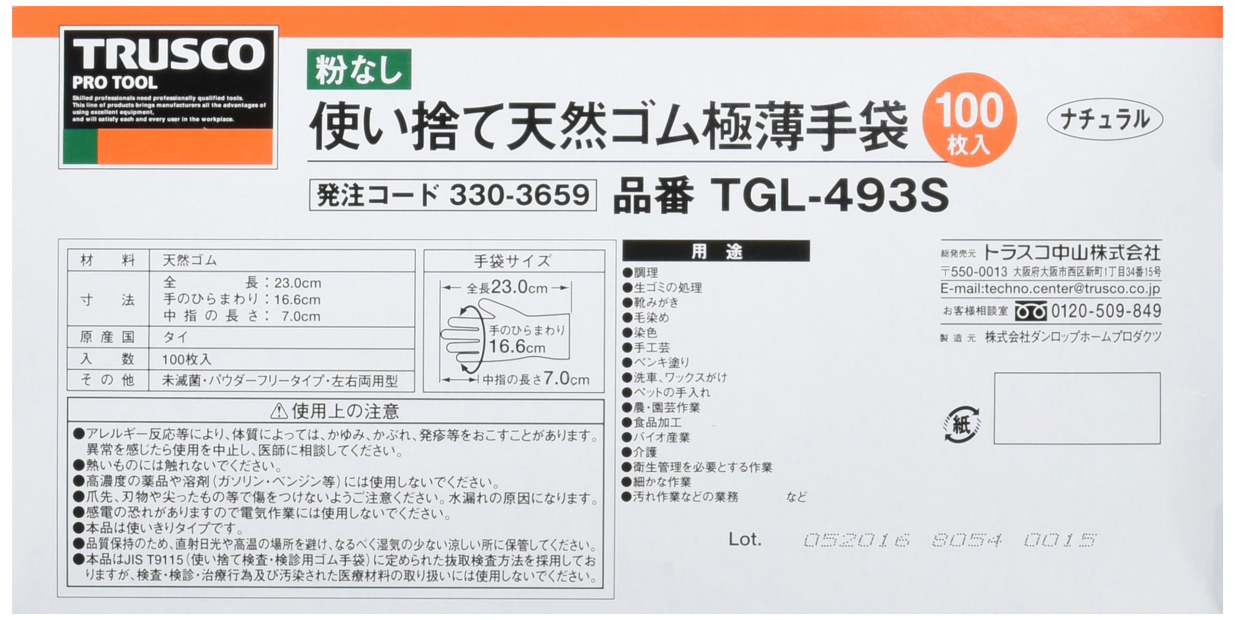 ● Thickness: 0.08 mm ● Food Hygiene Law conformable product ● No powder ● Food processing, fine work of the hand.