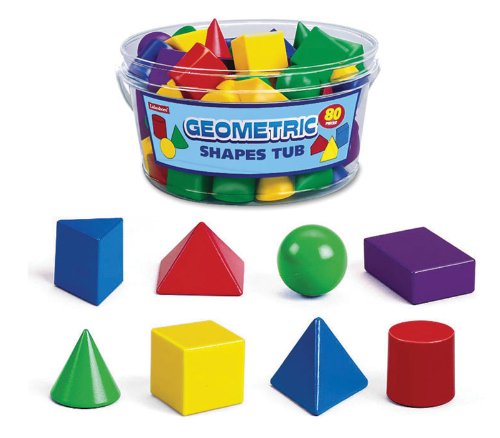 - Tub includes 80 manipulatives in eight shapes--including cubes, cones, spheres and more