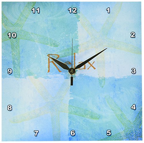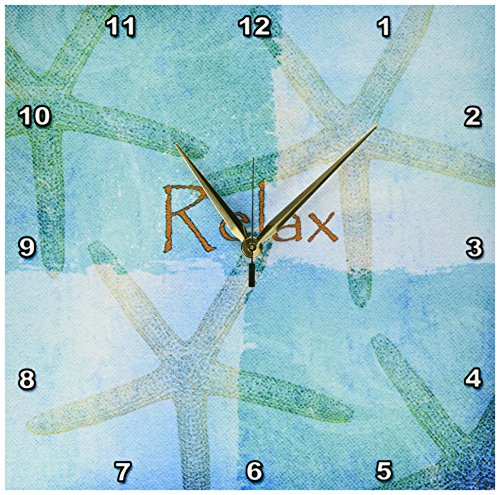 Relax Starfish Aqua and Blue Beach Theme with Ocean Colors Wall Clock is a wonderful compliment to any room in your home or office. Made of durable high grade aluminum. This clock has a high gloss mirror like, UV coated, scratch resistant finish and is suitable for a moist environment. Available in multiple sizes, requires one AA battery; not included. Battery box is not covered.Feature