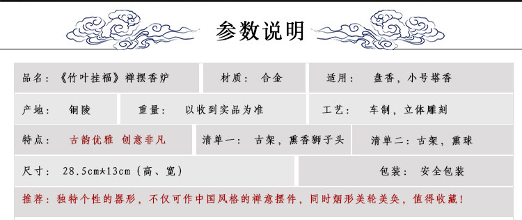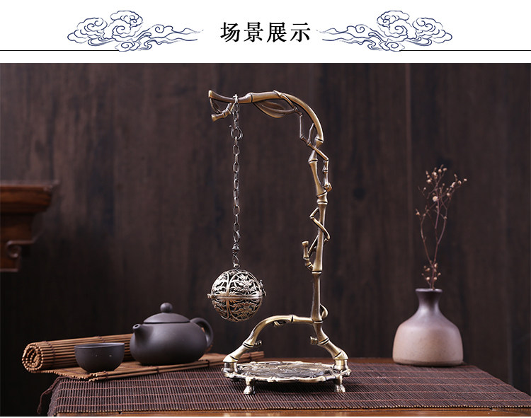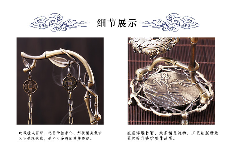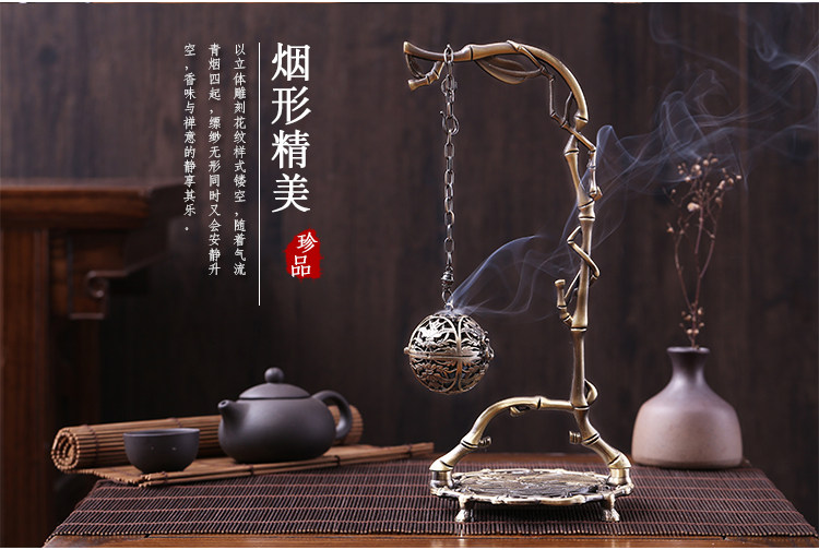 德香缘仿古香炉铜合金檀香炉竹叶挂福熏香球家用倒流香炉创意摆件