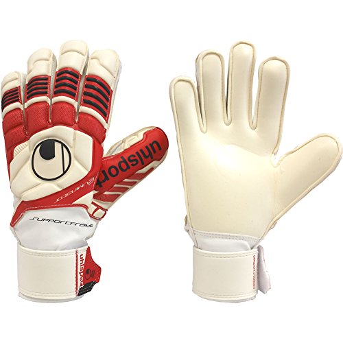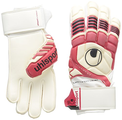 Studio : Uhlsport Publisher : Uhlsport Binding : Misc. Product Description PALM: SOFT latex.BACKHAND: Latex.CUT: Classic cut provides a maximised catching area.FASTENING: Wrap-around strap with name field and V-notch entry.GLOVE BODY: Soft PU with perforations around the fingers for improved breathability.DESIGN: Unique Eliminator-design. Integrated SUPPORTFRAME element for improved catching properties thanks to extra finger stabilisation. Embossed backhand and SCHOCKZONE design. 0